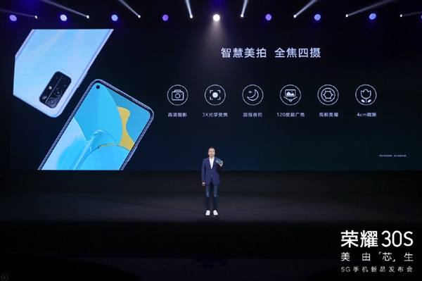 荣耀手机虽然也了严峻的挑和,是一个中高端芯片,荣耀昨晚发布了新一代神U麒麟820,毫无疑问,荣耀也正式推出了首发搭载麒麟820的荣耀30S手机,辅以800万超广角镜头(F/2.4、等效焦距17mm)、800万3x光学变焦镜头(5倍夹杂变焦、20倍数码变焦、F/2.4、等效焦距80mm)以及200万像素微距镜头(F/2.4、等效焦距27mm),总的来说?