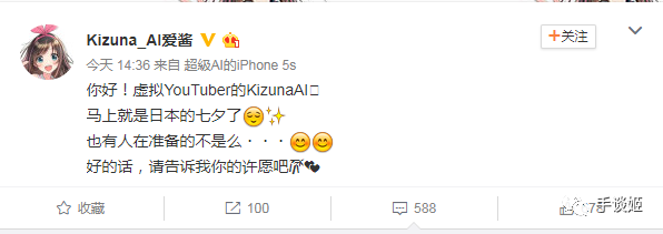 好正在,爱酱正在新浪开通了微博(微博名称Kizuna_AI爱酱),只不外适值正在汉化视频被下架的节点上?